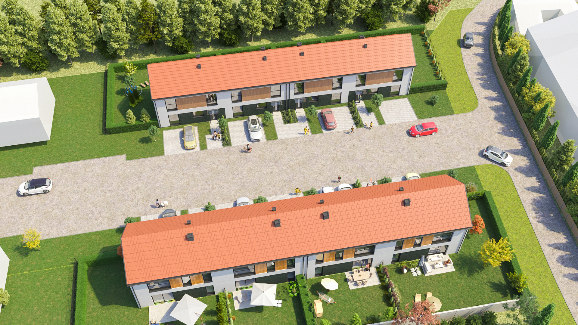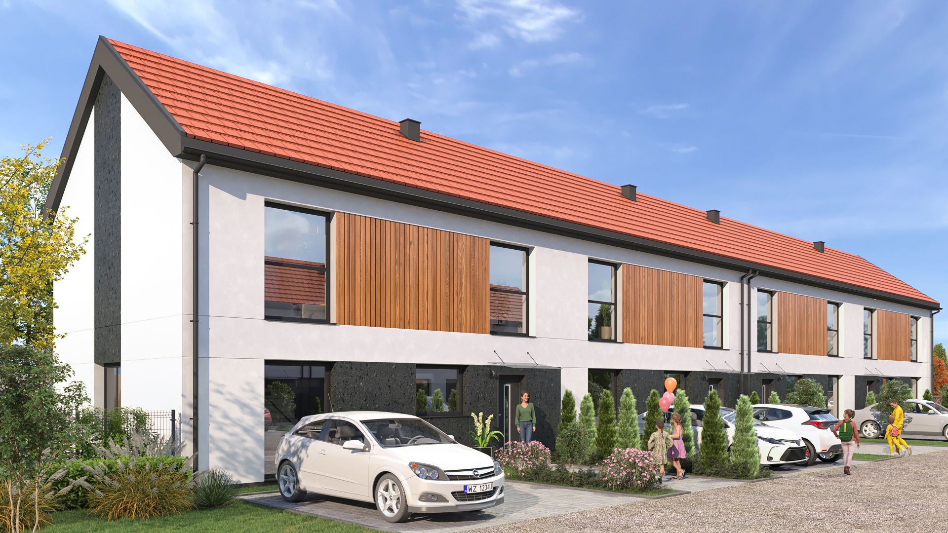 Etap I w sprzedaży - termin oddania: przełom II i III kwartału 2026 r. Każdy lokal to praktycznie osobny dom: parter, piętro, ogród i podjazd z 2 miejscami postojowymi.